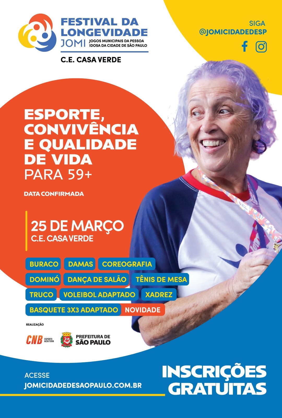 O festival pré-JOMI, etapa Zona Norte, organizado pela Secretaria Municipal de Esportes de São Paulo, será na próxima quarta-feira, dia 25 de março, no Centro Esportivo Casa Verde, na Rua Armando Coelho Silva, 775, no Parque Peruche.