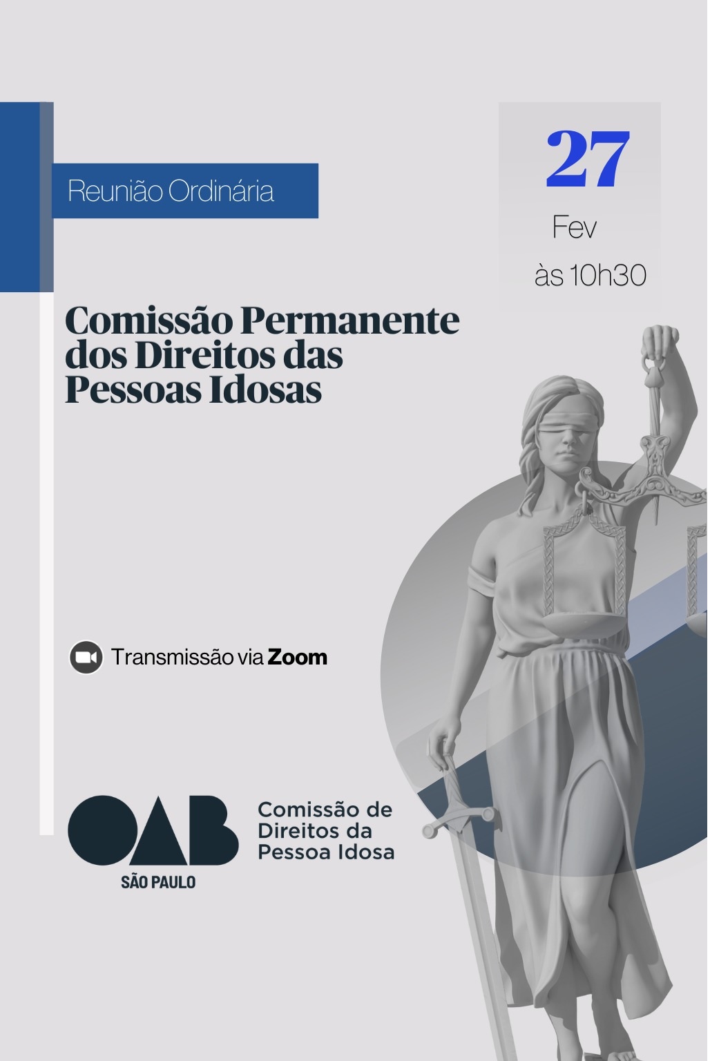 A Comissão da Pessoa Idosa da OAB São Paulo faz dia 27/2 sua primeira reunião de 2026 no formato virtual EVENTOS 2026 16 de fevereiro de 2026 Siga o Jornal da 3ª Idade de SP no Instagram Herminia Brandão 16 de fevereiro de 2026