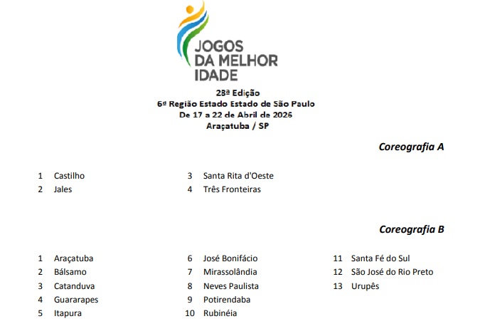 A disputa da Coreografia na 1ª Etapa do JOMI Estadual 2026, em Araçatuba, terá 17 cidades participantes