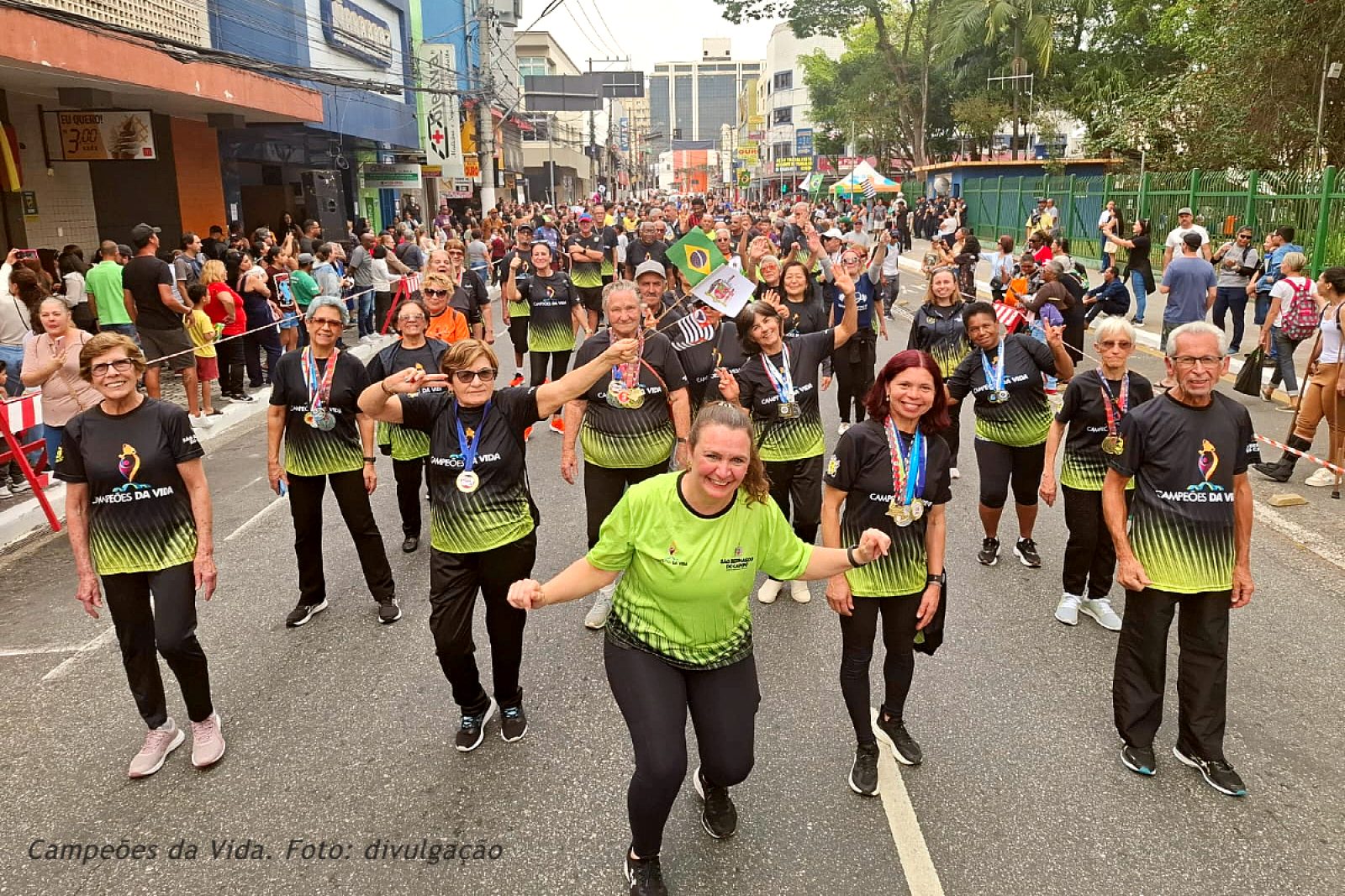 Os atletas do projeto Campeões da Vida, que têm participado nos principais torneios esportivos de São Paulo, capitaneados pela Prof.ª Tamara Rufini Vicente, representando a terceira idade da cidade, desfilaram nas comemorações dos 472 anos de São Bernardo do Campo.
