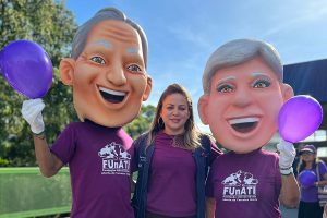 Bonecos da FUNATI com a diretora do CAIMI Roberta