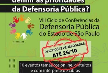 Defensoria Pública de SP encerra hoje 25/10 inscrições para VIII Ciclo de Conferências