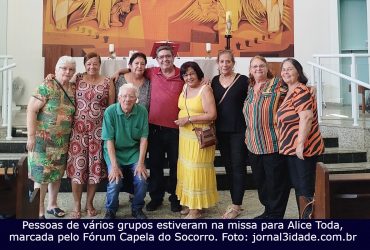 Pessoas de vários grupos estiveram na missa para Alice Toda na Igreja de São Joaquim em Interlagos