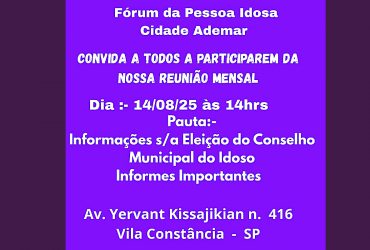 Fórum da Pessoa Idosa de Cidade Ademar e Pedreira marcou seu próximo encontro mensal para 10/10