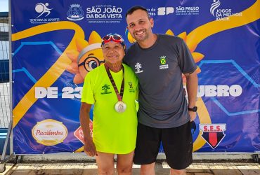 Divacy G. da Silva Sobrinho, 90 anos, de Santo André, Ouro nos 25 mts Nado Costas, na Final do JOMI 2025