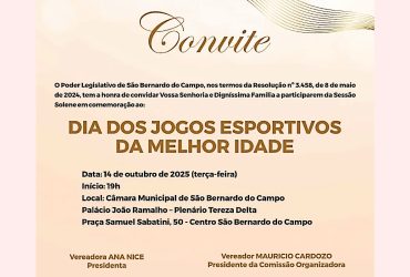 Câmara Municipal de São Bernardo do Campo, SP, faz hoje sessão solene pelo Dia dos Jogos Esportivos da Melhor Idade