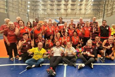 Grupo de pessoas idosas voluntárias dos Campeões da Vida personificaram a gentileza e a atenção de São Bernardo do Campo como anfitriã do JOMI 2023