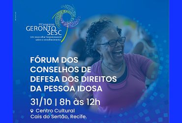 O 1º Congresso GerontoSESC em Pernambuco tem na programação o Fórum Nacional dos Conselhos da Pessoa Idosa