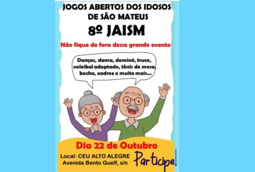 O 8º Jogos Abertos dos Idosos de São Mateus no próxima sábado 22/10 no CEU Alto Alegre na Zona Leste de SP