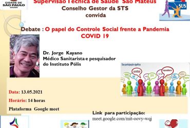 O papel do Controle Social frente a Pandemia da COVID19 é tema de live em 13/5