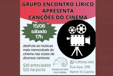 Grupo Encontro Lírico oferece audição com canções de trilhas de filmes de cinema na tarde de 15/6