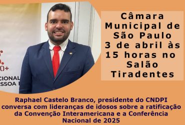 Presidente do Conselho Nacional da Pessoa Idosa estará amanhã, 3/4, na Câmara Municipal de São Paulo