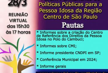 Fórum para Pessoas Idosas da Região Centro, na Capital, SP, faz sua reunião de março no formato virtual em 28/3