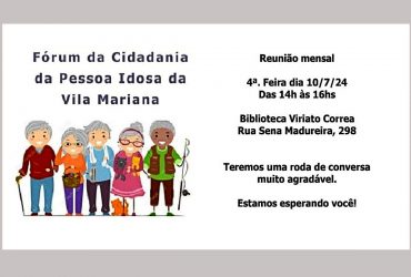 Fórum da Cidadania da Pessoa Idosa da Vila Mariana, da Zona Sul em S. Paulo, faz a reunião de julho dia 10