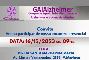 O GAIAlzheimer Grupo de Apoio Interdisciplinar fará em 16/12 seu último encontro de 2023