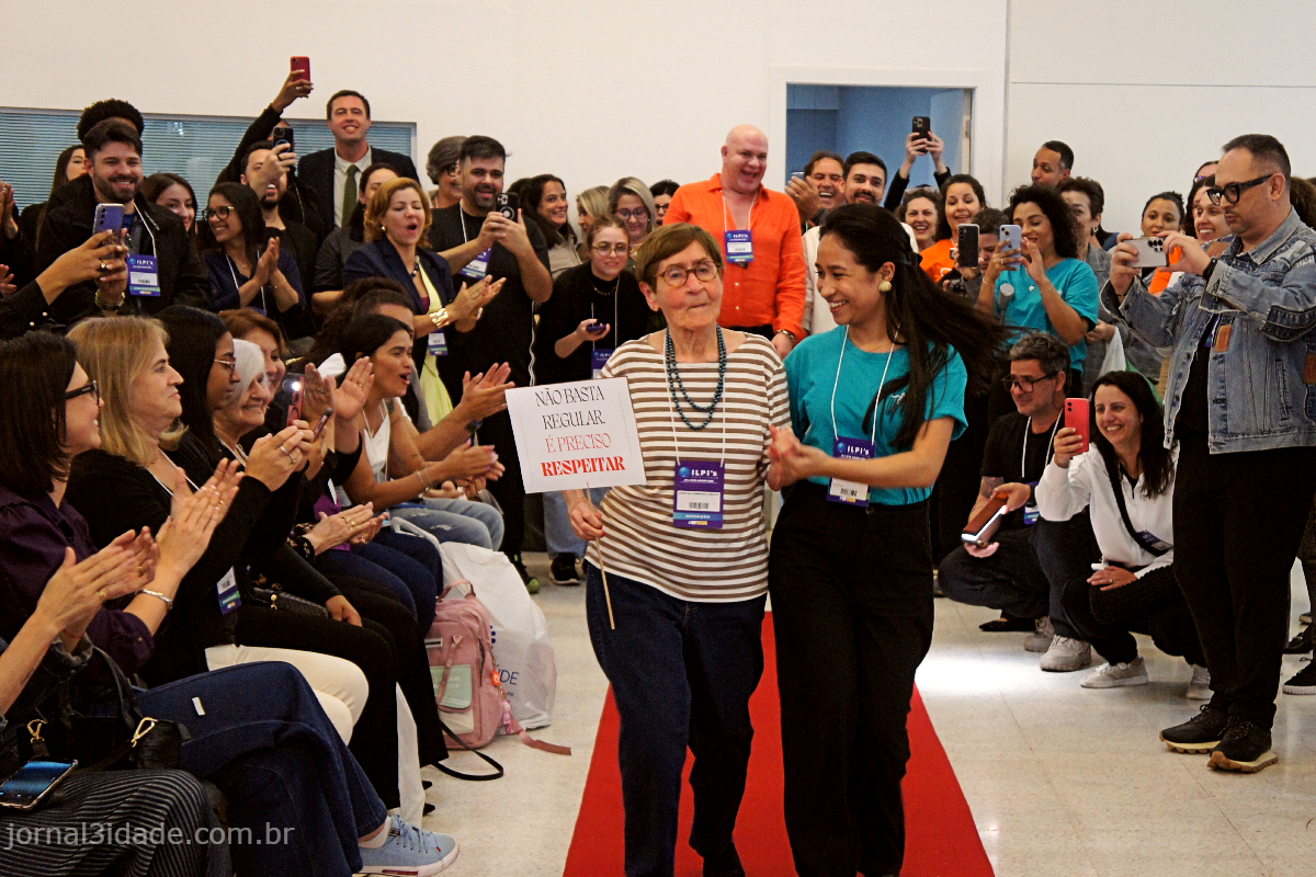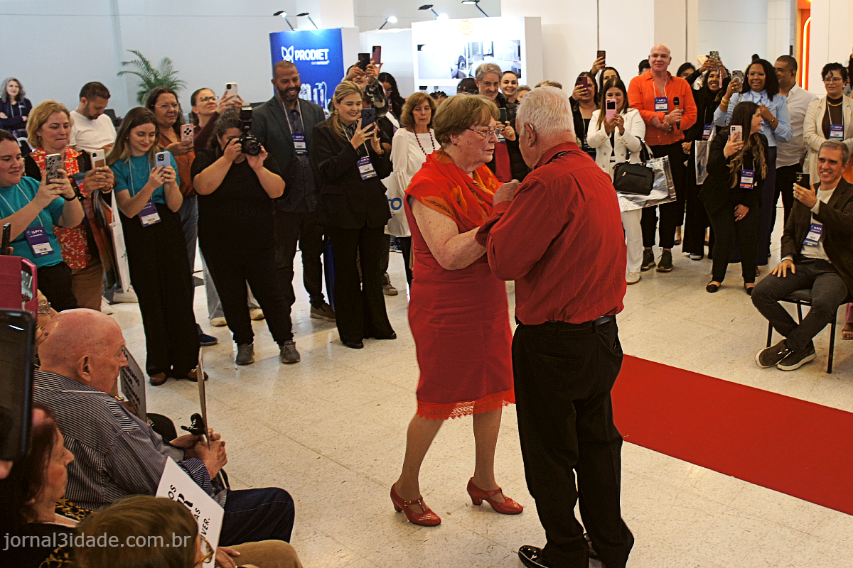Colocar os idosos no tapete vermelho, para fechar o evento, como também fizemos no ano passado, é uma intervenção artística para celebrar a vida. Isso mostra que eles são os verdadeiros protagonistas de tudo que foi debatido aqui, com tantos profissionais muito qualificados, disse o arte terapeuta, bailarino e doutorando em Artes Expressivas, Guilherme de Almeida.