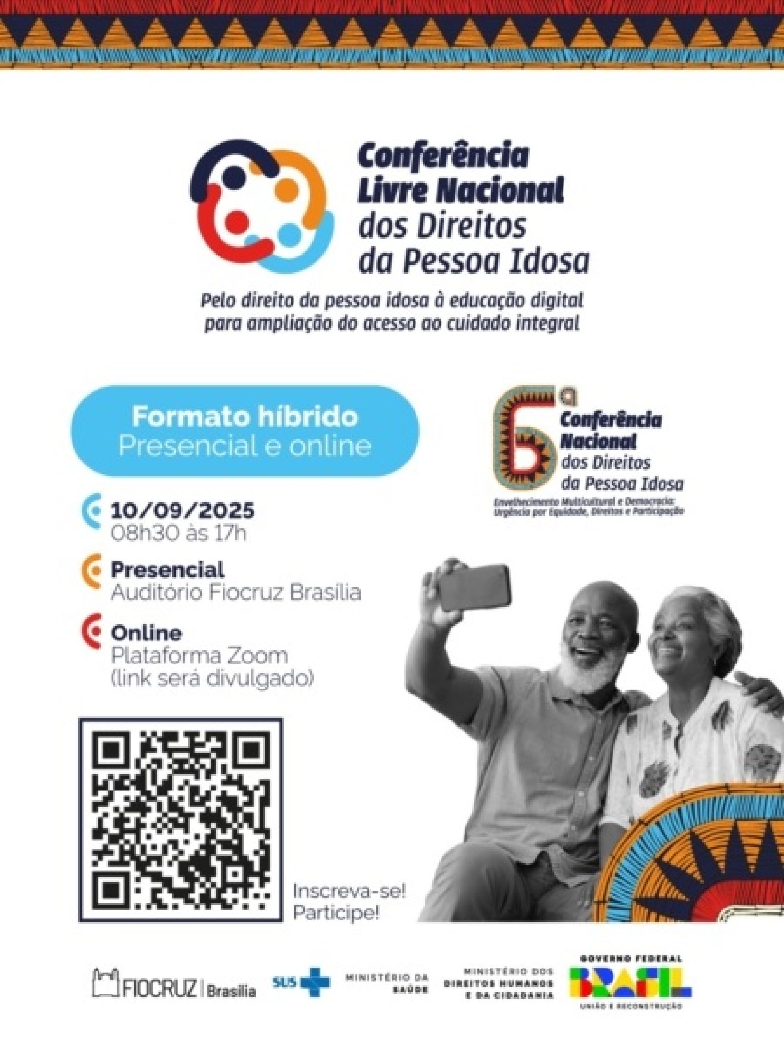 A conferência é uma etapa preparatória para a 6ª Conferência Nacional dos Direitos da Pessoa Idosa (6ª CONADIPI), que será realizada de 16 a 19 de dezembro, em Brasília. No encontro promovido pela Fiocruz Brasília, os debates serão orientados pelos Eixos 2, 3 e 4 da conferência nacional, considerando o letramento e a educação digital como estratégia para o cuidado integral, proteção contra violências e abandono social, e instrumentos de participação social e fortalecimento das relações entre gerações.