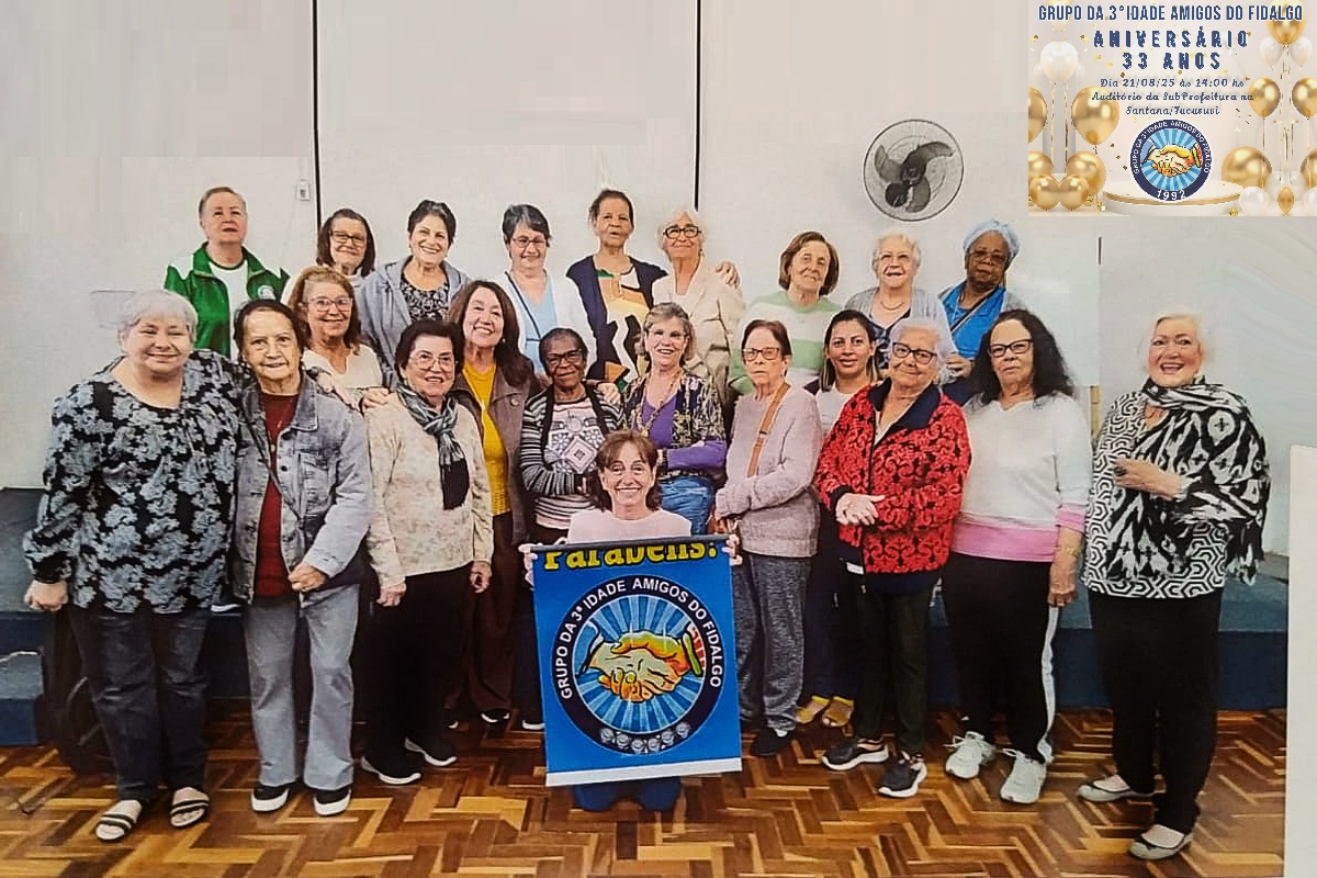 O Grupo Amigos do Fidalgo, coordenado por Heloísa Lopes, que faz as suas reuniões no auditório da Subprefeitura de Santana e Tucuruvi, na Zona Norte da capital, em São Paulo, comemorou hoje, 21 de agosto, seu aniversário de 33 anos.
