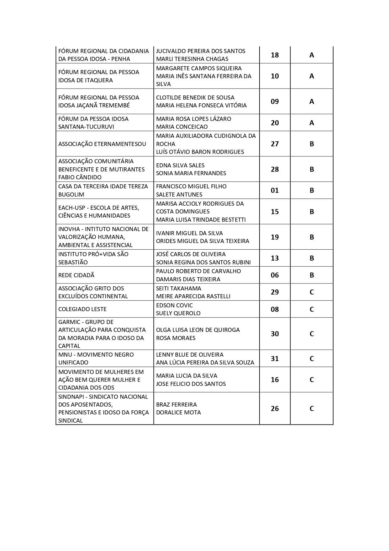 Categoria B são as duplas (titular e suplente) candidatas das entidades de Proteção Social / Proteção Jurídica /Ensino e Pesquisa de Defesa de Trabalhadores da Área de Envelhecimento e Velhice;