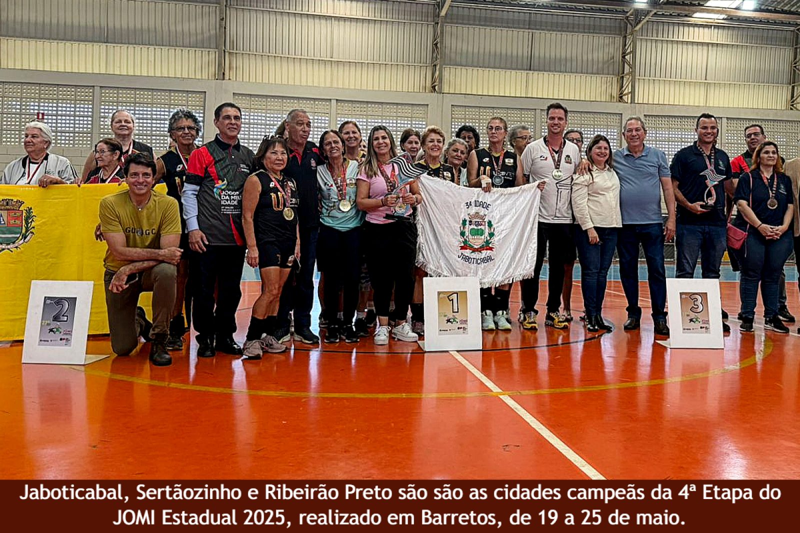 Jaboticabal, Sertãozinho e Ribeirão Preto foram as cidades campeãs da 4ª Etapa dos 27º Jogos Estaduais da Melhor Idade de SP, encerrada ontem, domingo, 25 de maio, na cidade de Barretos, a 440 km da capital.