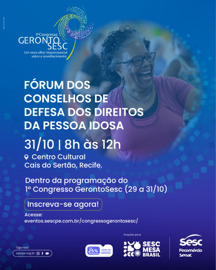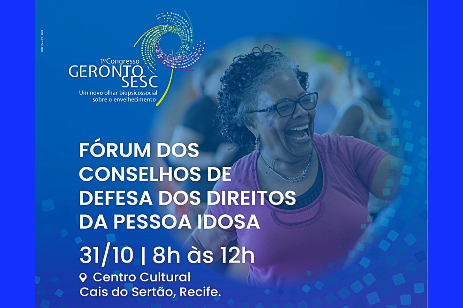 O 1º Congresso GerontoSESC em Pernambuco tem na programação o Fórum Nacional dos Conselhos da Pessoa Idosa