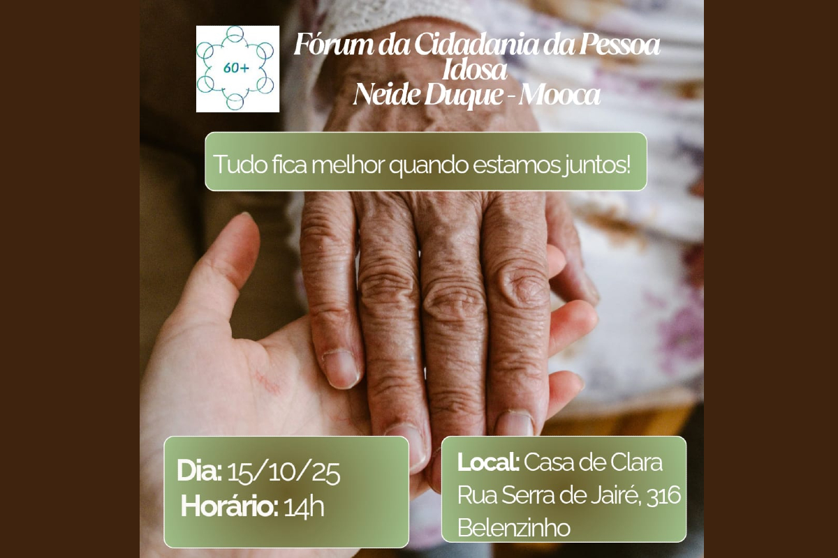 O Fórum da Cidadania da Pessoa Idosa Neide Duque, na Mooca, Zona Leste de SP, faz a reunião de outubro dia 15