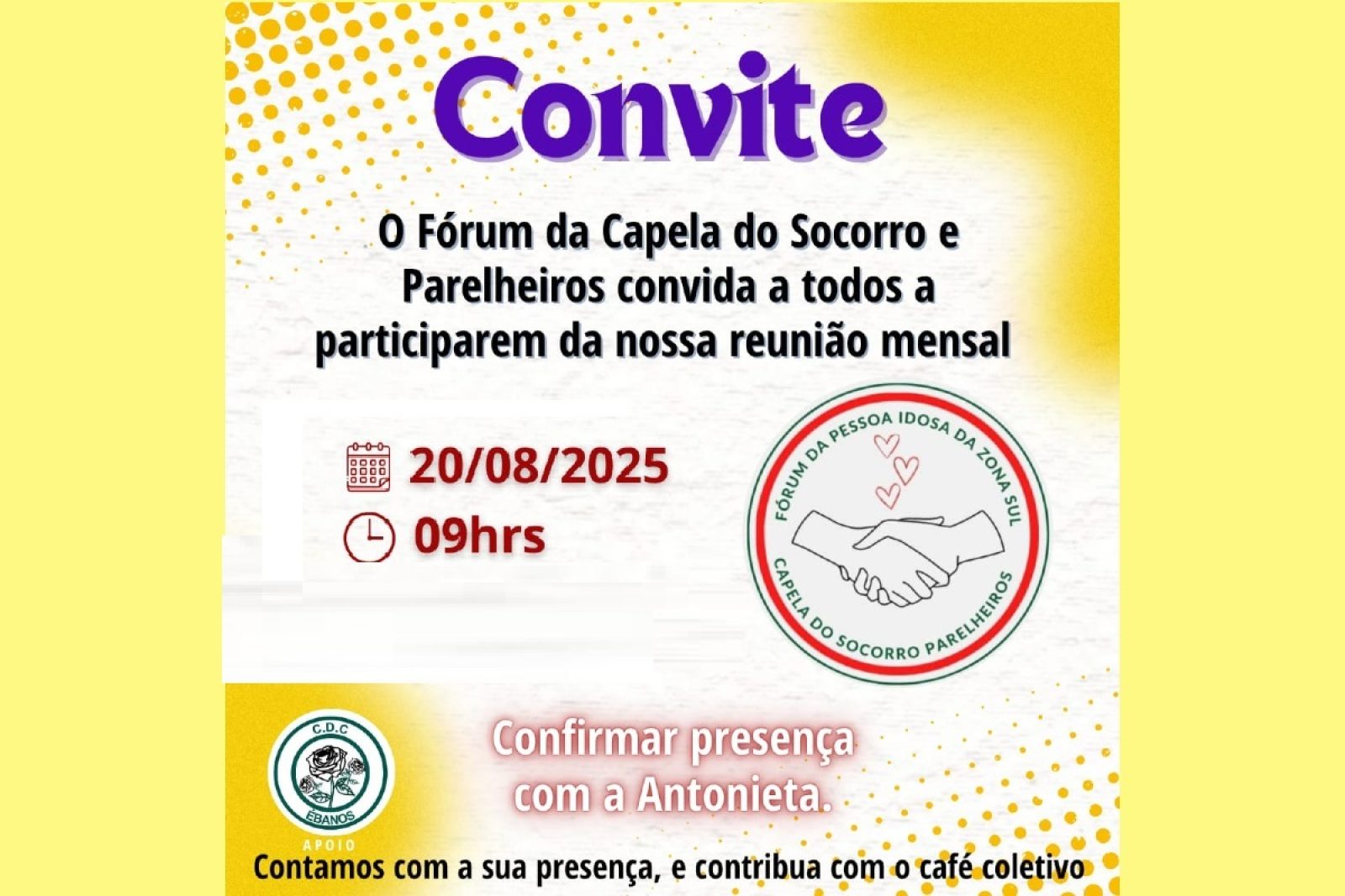 Próxima reunião do Fórum da Pessoa Idosa da Capela do Socorro e Parelheiros, na Zona Sul, será dia 20