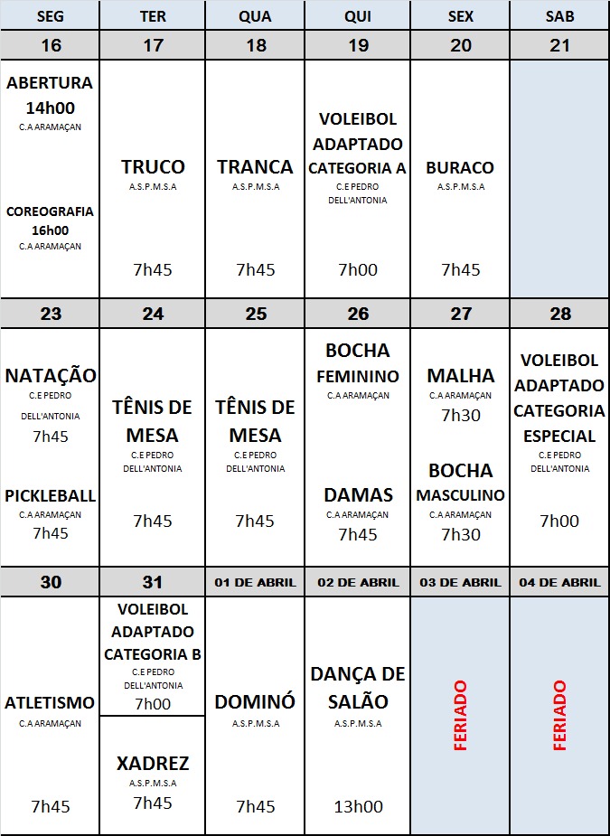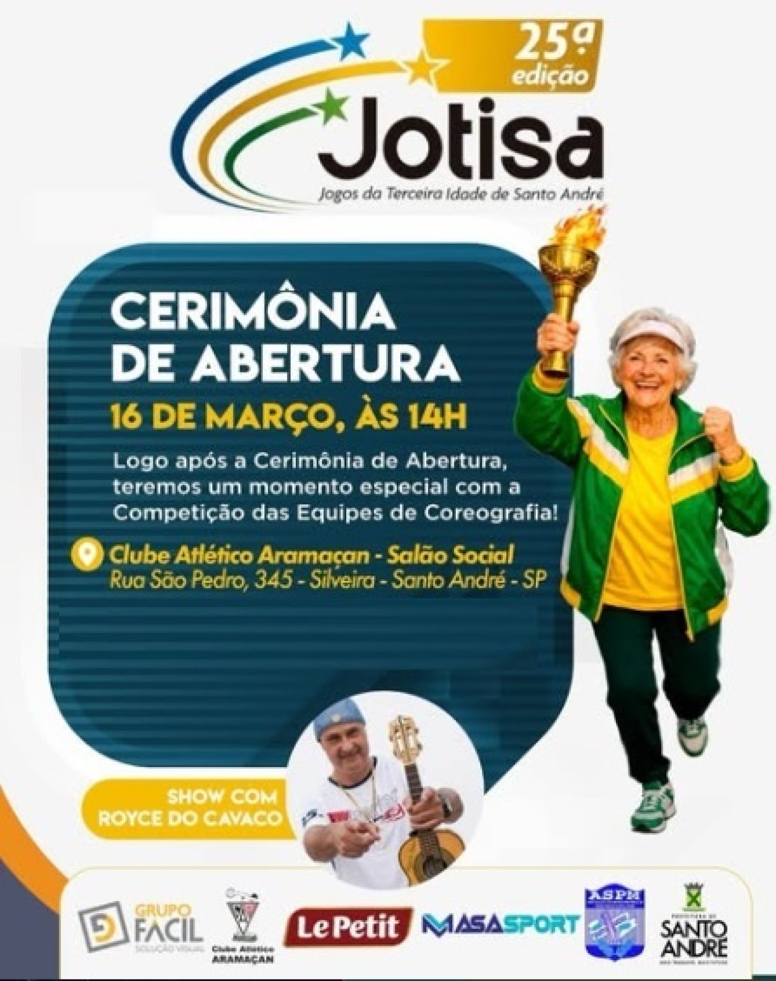 A edição 2026 do JOTISA- Jogos da Terceira Idade de Santo André, promovidos pela Secretaria Municipal de Esportes de Santo André, começa hoje com a cerimônia de abertura realizada, no Clube Atlético Aramaçan, às 14h.