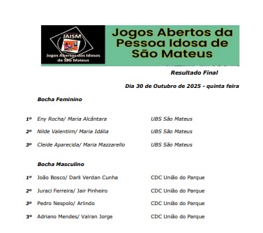 UBS São Mateus, no feminino e CDC União do Parque, no masculino, são os campeões da Bocha no JAISM 2025